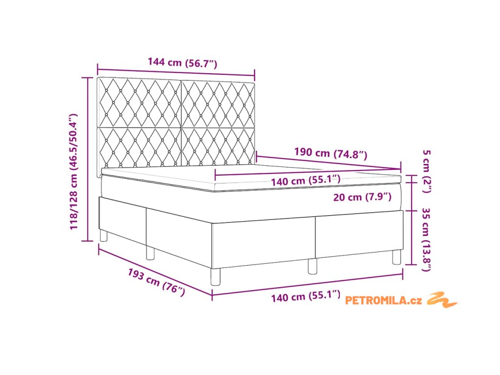 - Velikost matrace: Krátká dvojpostel (140 cm x 190 cm nebo 55" x 75")