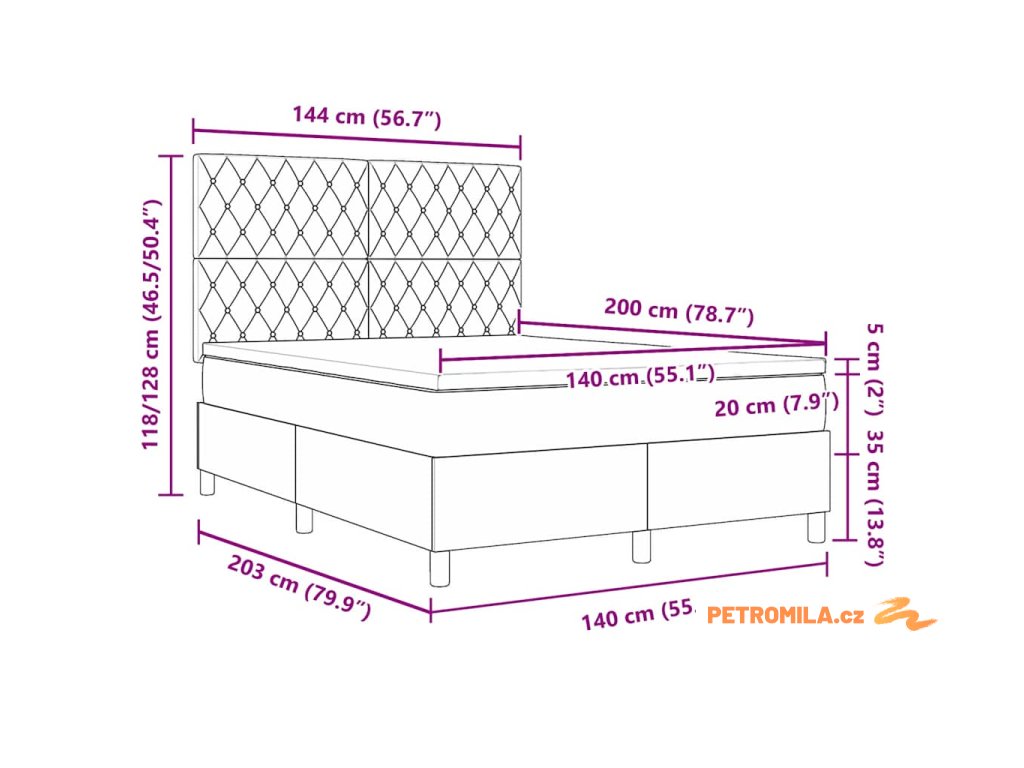 - Velikost matrace: Dvojpostel (140 cm x 200 cm nebo 55" x 79")