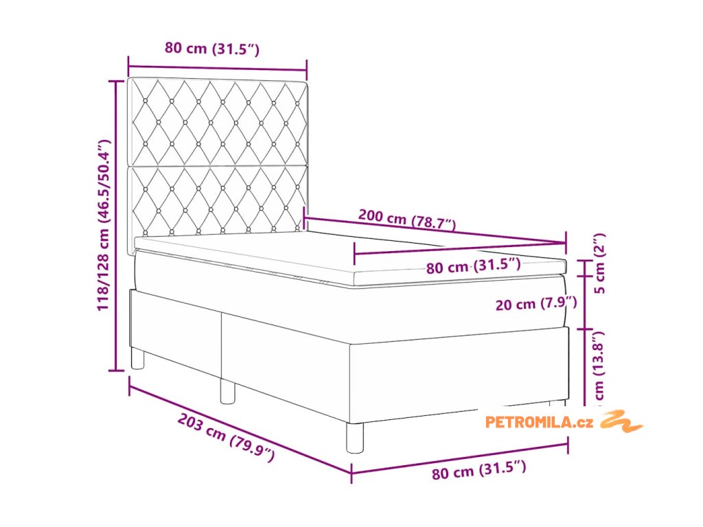 - Velikost matrace: Malé jednolůžko (80 cm x 200 cm nebo 31" x 79")