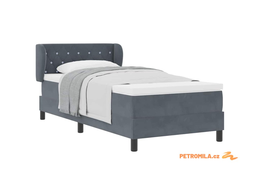 Postel s boxspringem s matrací Tmavě šedá 90 x 200 cm samet