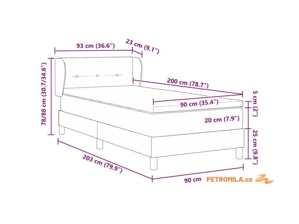 - Velikost matrace: Jednolůžko (90 cm x 200 cm nebo 35" x 79")