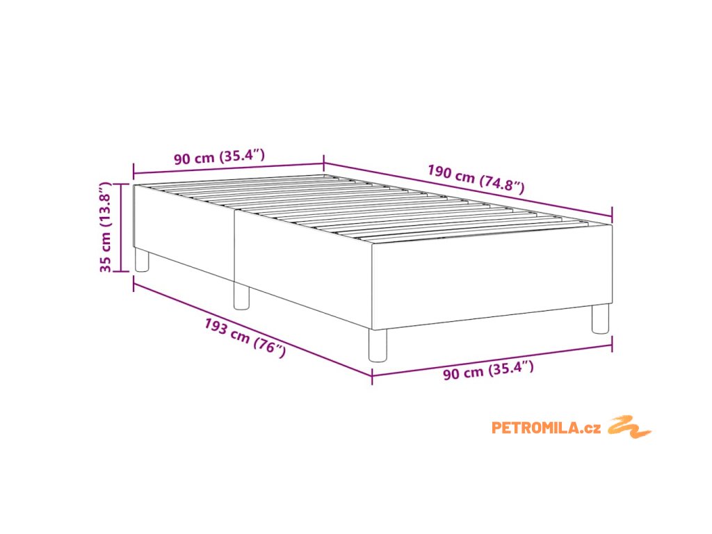 - Velikost matrace: Krátké jednolůžko (90 cm x 190 cm nebo 35" x 75")