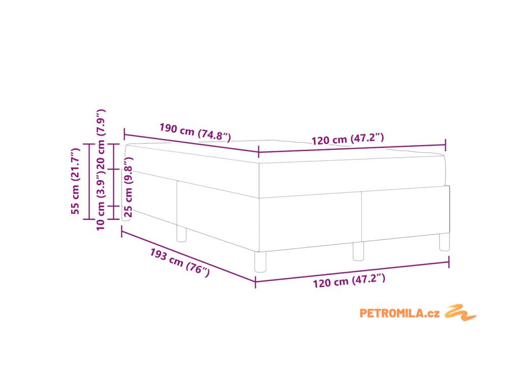 - Velikost matrace: Krátká malá dvojpostel (120 cm x 190 cm nebo 47" x 75")