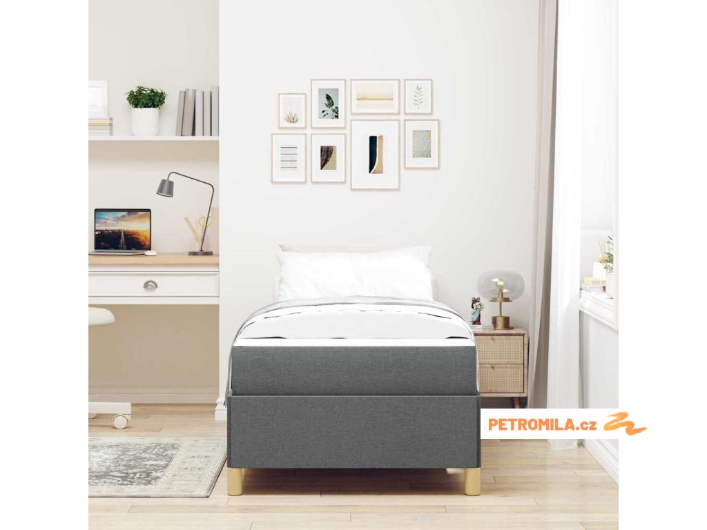 Postel s boxspringem Tmavě šedá a bílá a tmavě šedá 90 x 200 cm