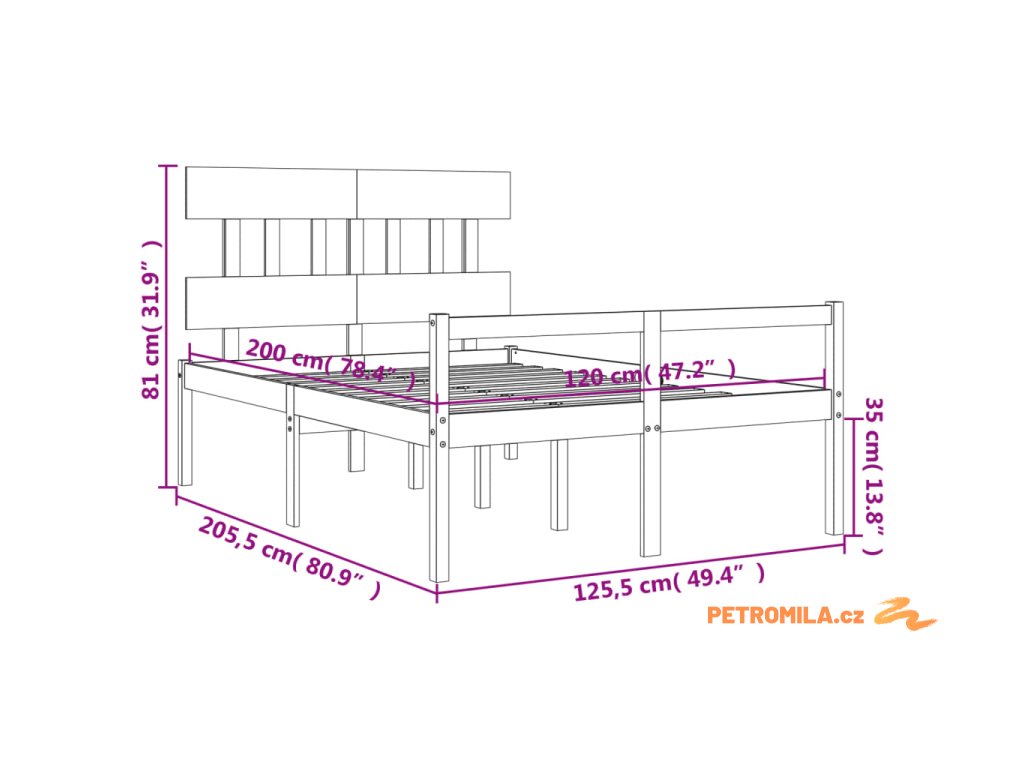 - Celkové rozměry postele: 205,5 x 125,5 x 81 cm (D x Š x V)