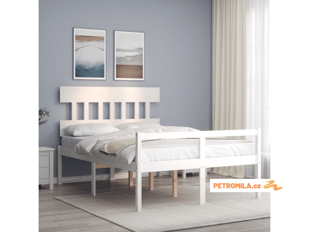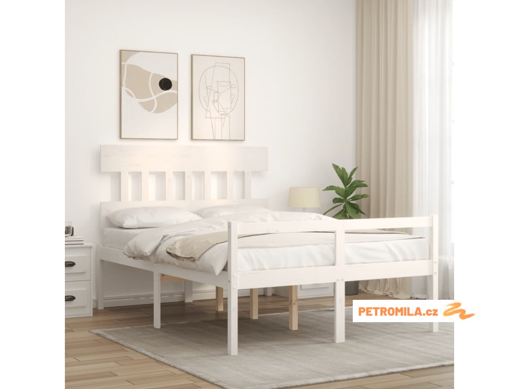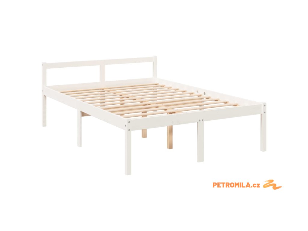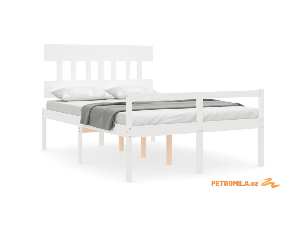 Postel s čelem pro seniory bílý 120x200 cm masivní dřevo