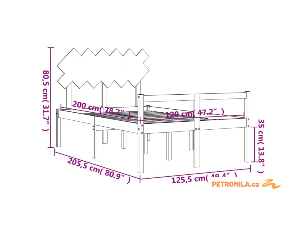 - Celkové rozměry postele: 205,5 x 125,5 x 80,5 cm (D x Š x V)