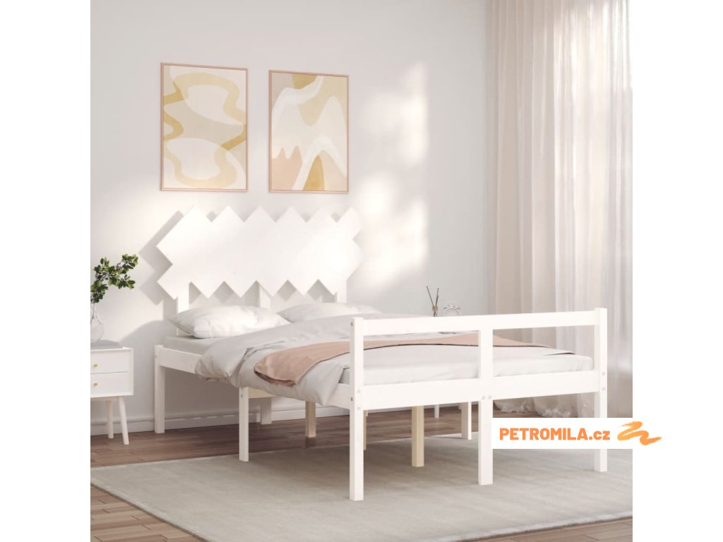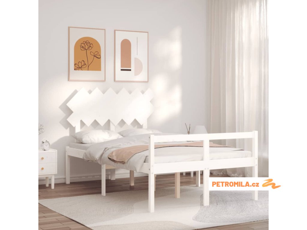 Postel s čelem pro seniory bílý 120x200 cm masivní dřevo