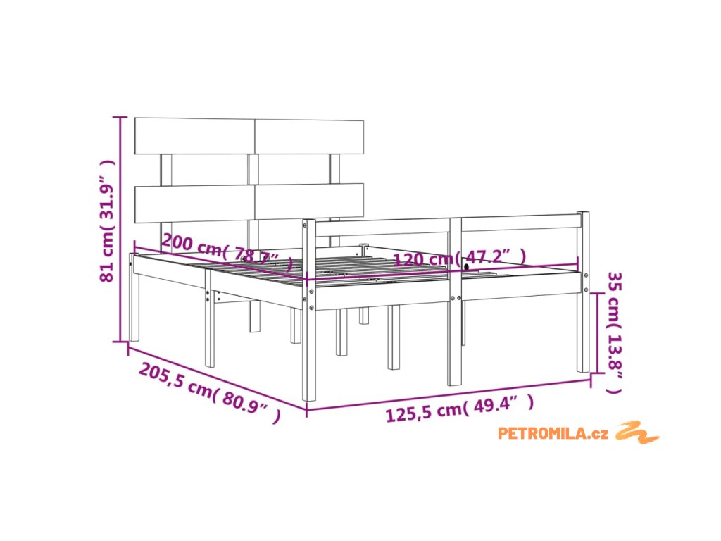 - Celkové rozměry postele: 205,5 x 125,5 x 81 cm (D x Š x V)