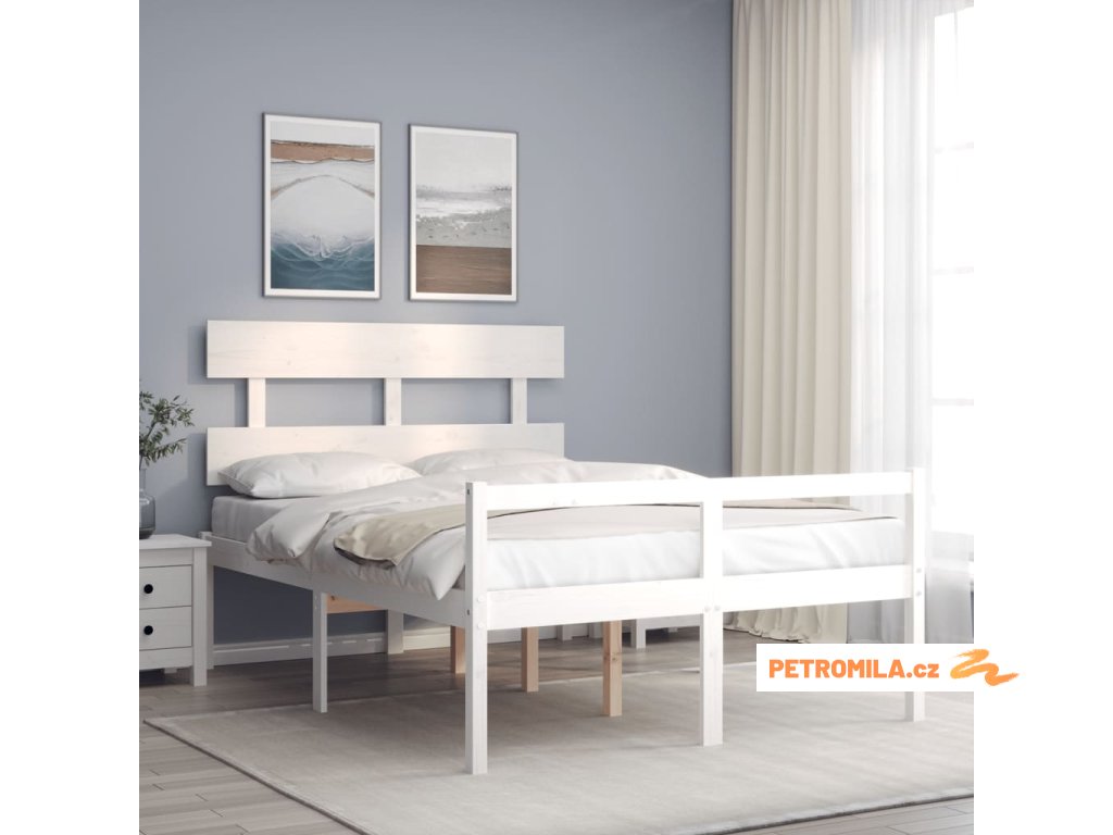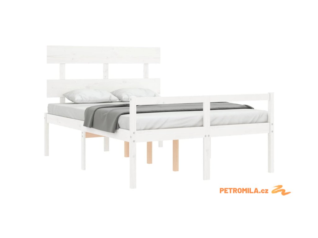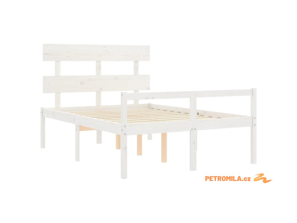 Postel s čelem pro seniory bílý 120x200 cm masivní dřevo
