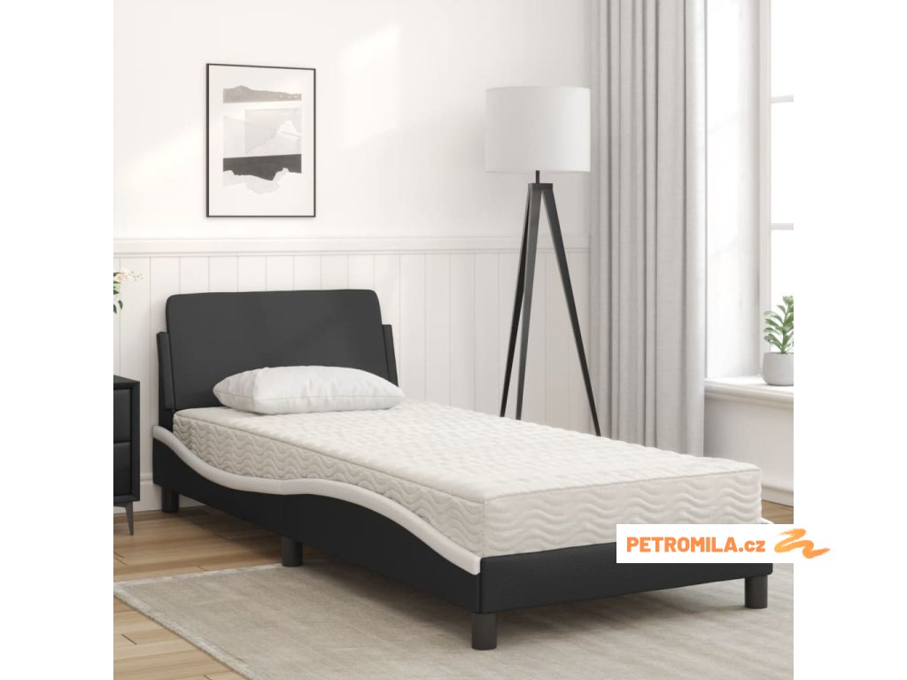 Postel s matrací Dover černá a bílá 90 x 200 cm umělá kůže