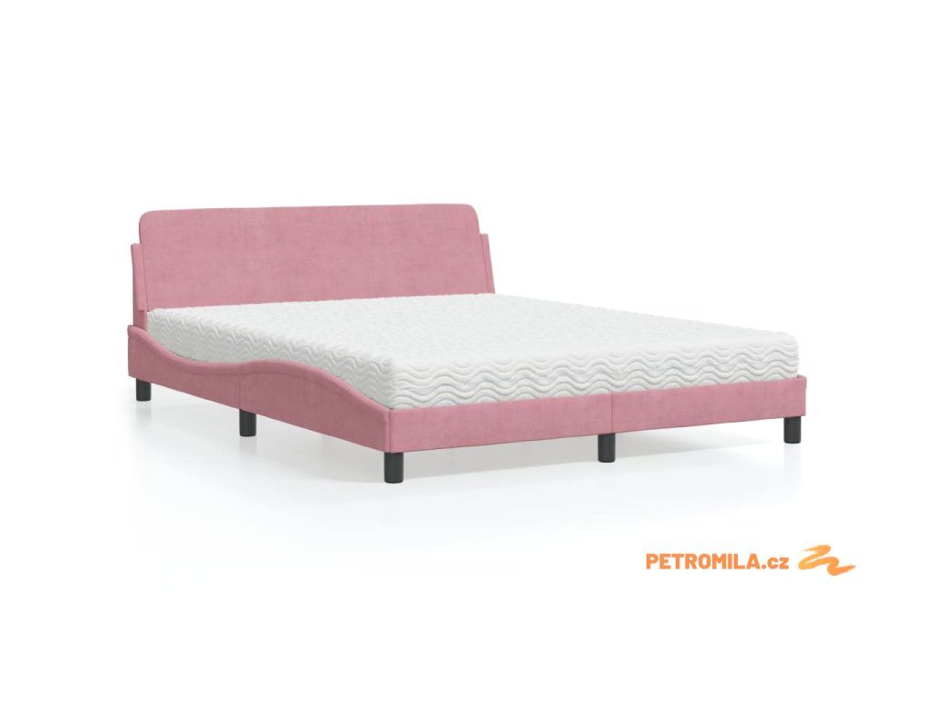 Postel s matrací Dover růžová 160 x 200 cm samet