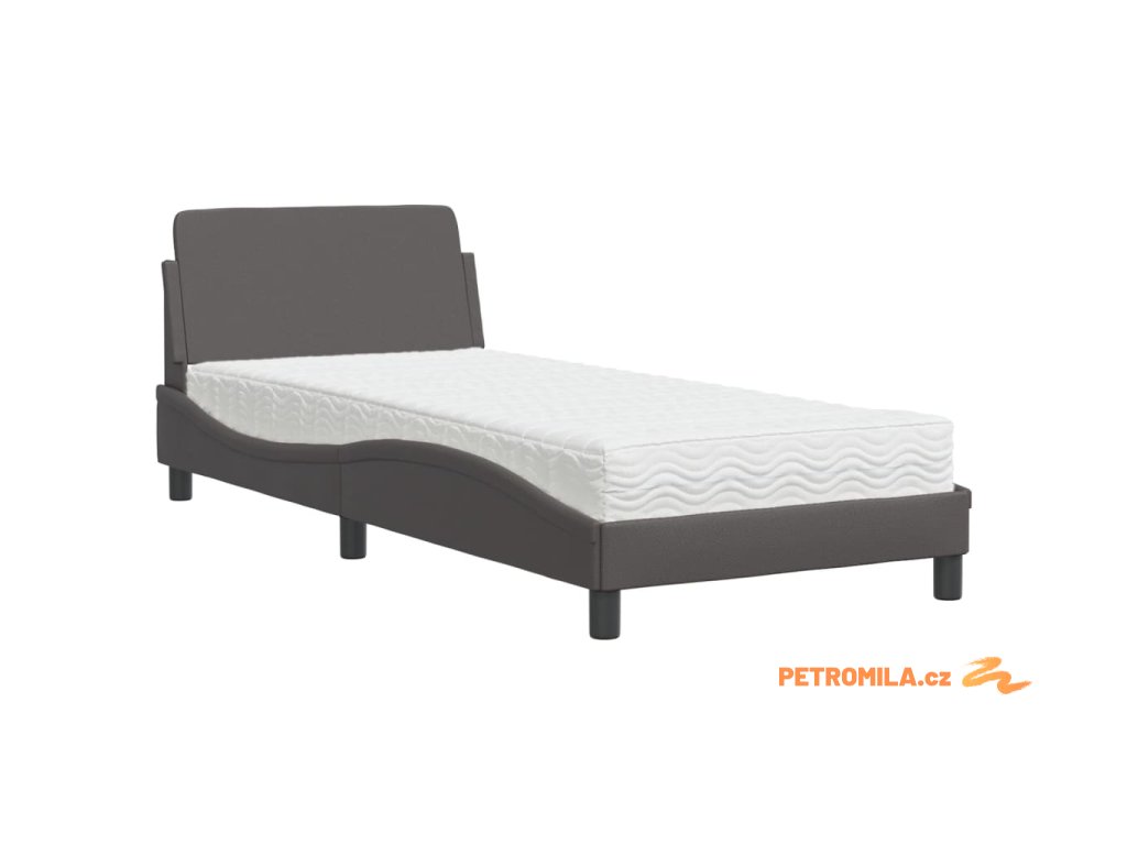 Postel s matrací Dover šedá 90 x 190 cm umělá kůže
