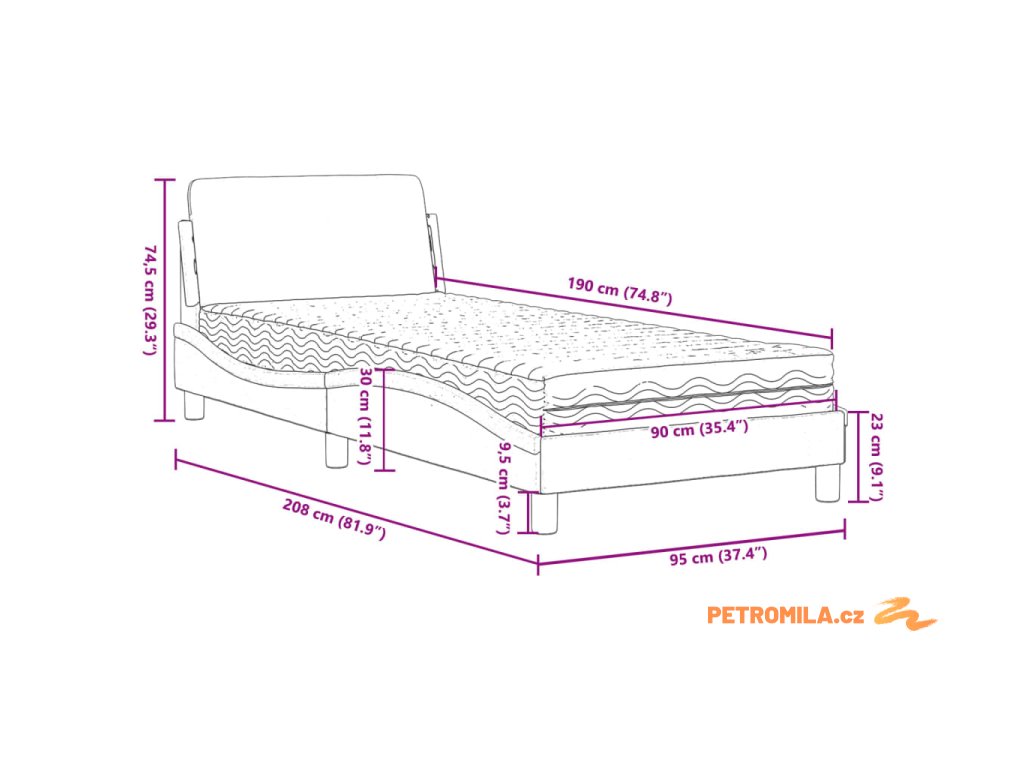 - Celkové rozměry: 208 x 95 x 74,5 cm (D x Š x V)