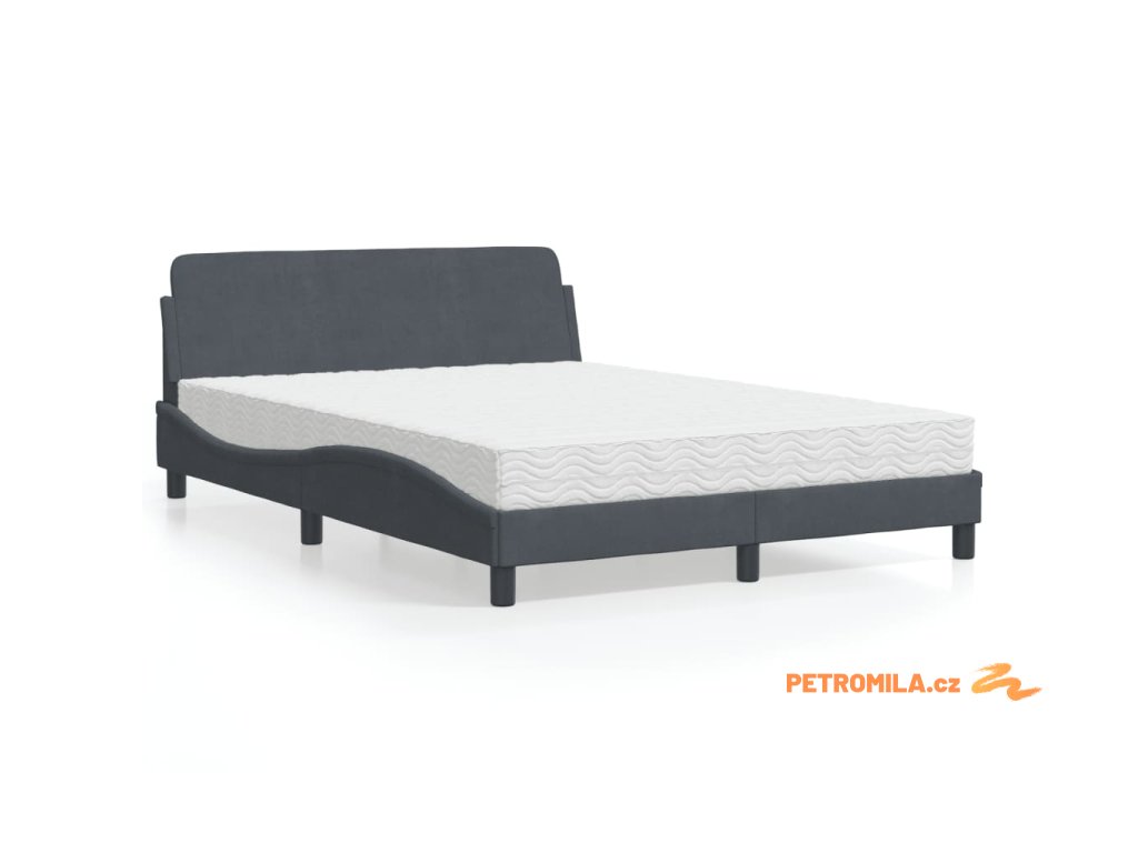 Postel s matrací Dover tmavě šedá 140 x 200 cm samet