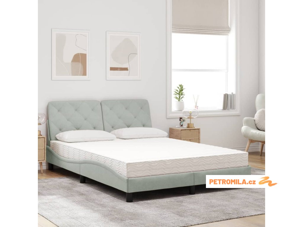 Postel s matrací světle šedá 140 x 190 cm samet