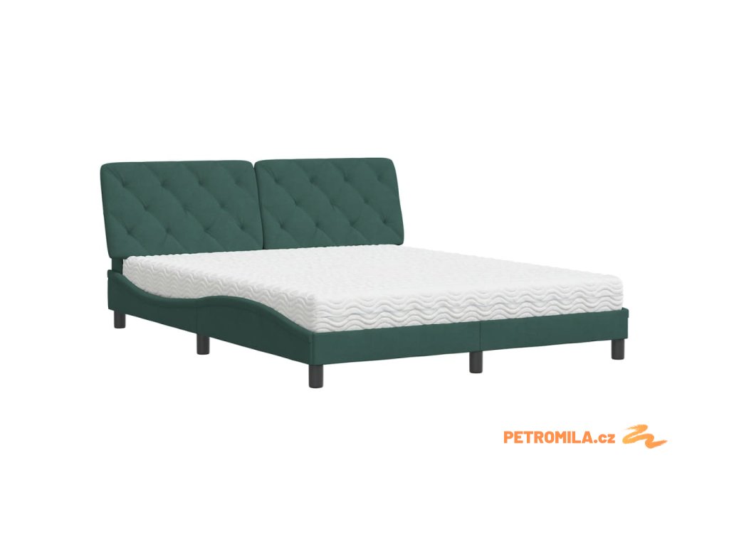 Postel s matrací tmavě zelená 160 x 200 cm samet