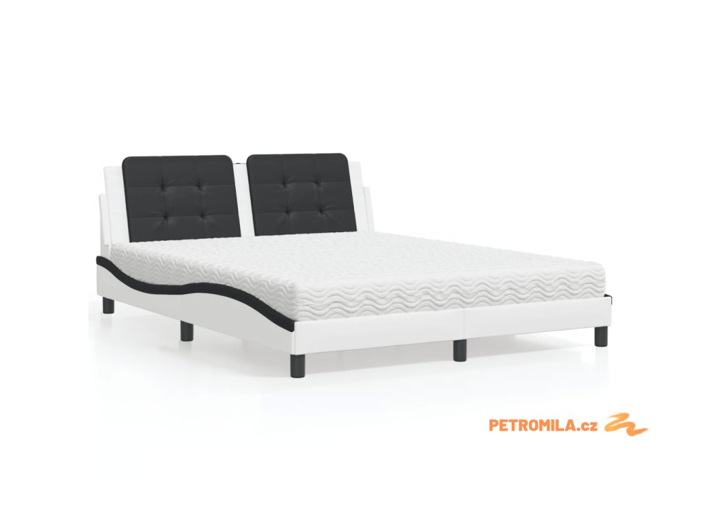 Postel s matrací Zadar bílá a černá 160 x 200 cm umělá kůže