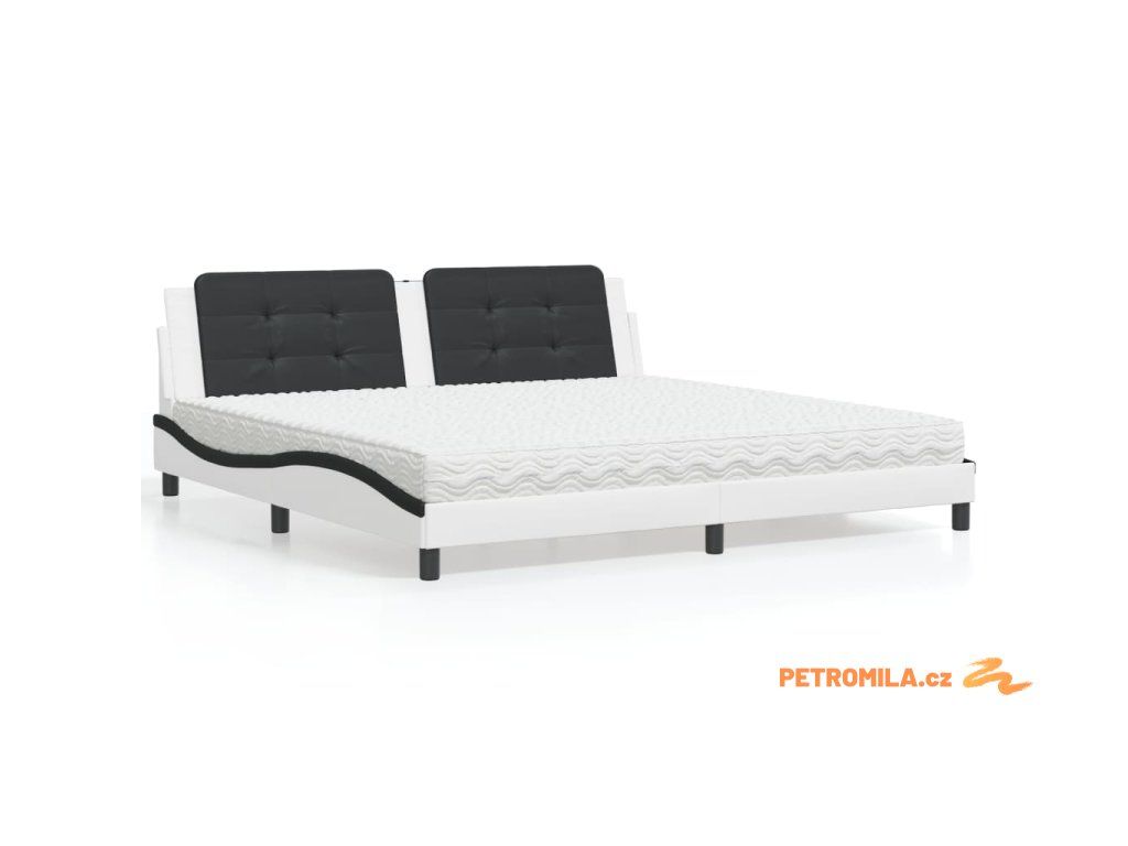 Postel s matrací Zadar bílá a černá 200 x 200 cm umělá kůže