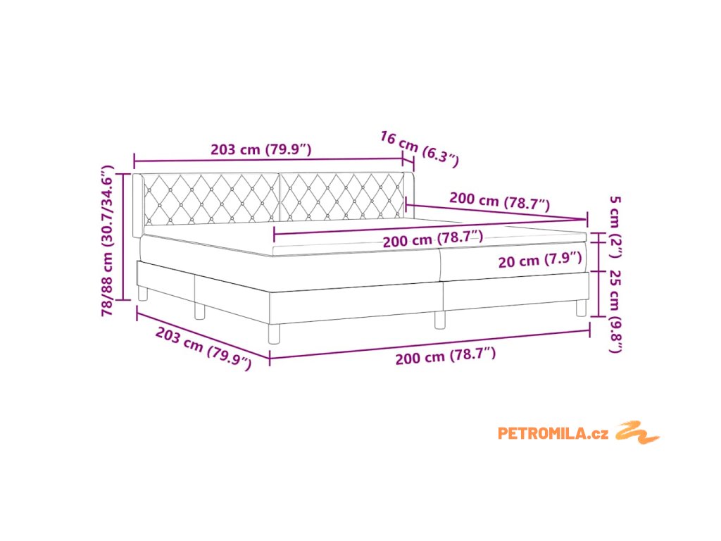 - Velikost matrace: Císařská postel (200 cm x 200 cm nebo 79" x 79")