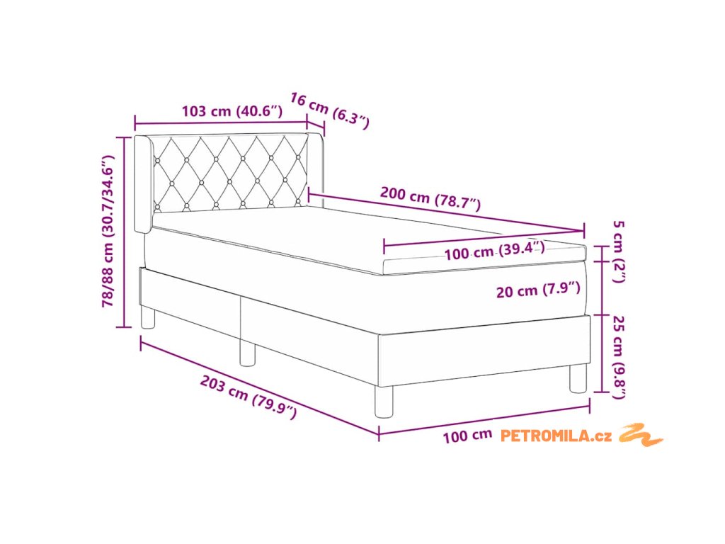 - Velikost matrace: Široké jednolůžko (100 cm x 200 cm nebo 39" x 79")