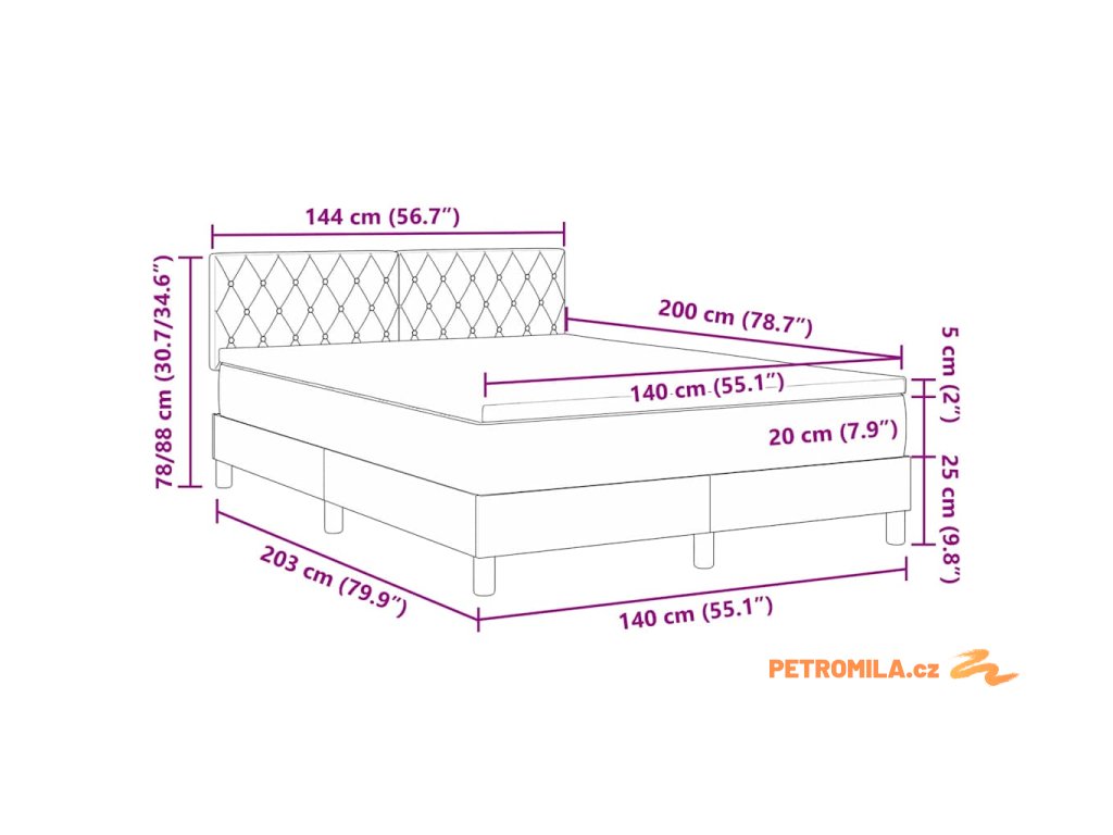 - Velikost matrace: Dvojpostel (140 cm x 200 cm nebo 55" x 79")