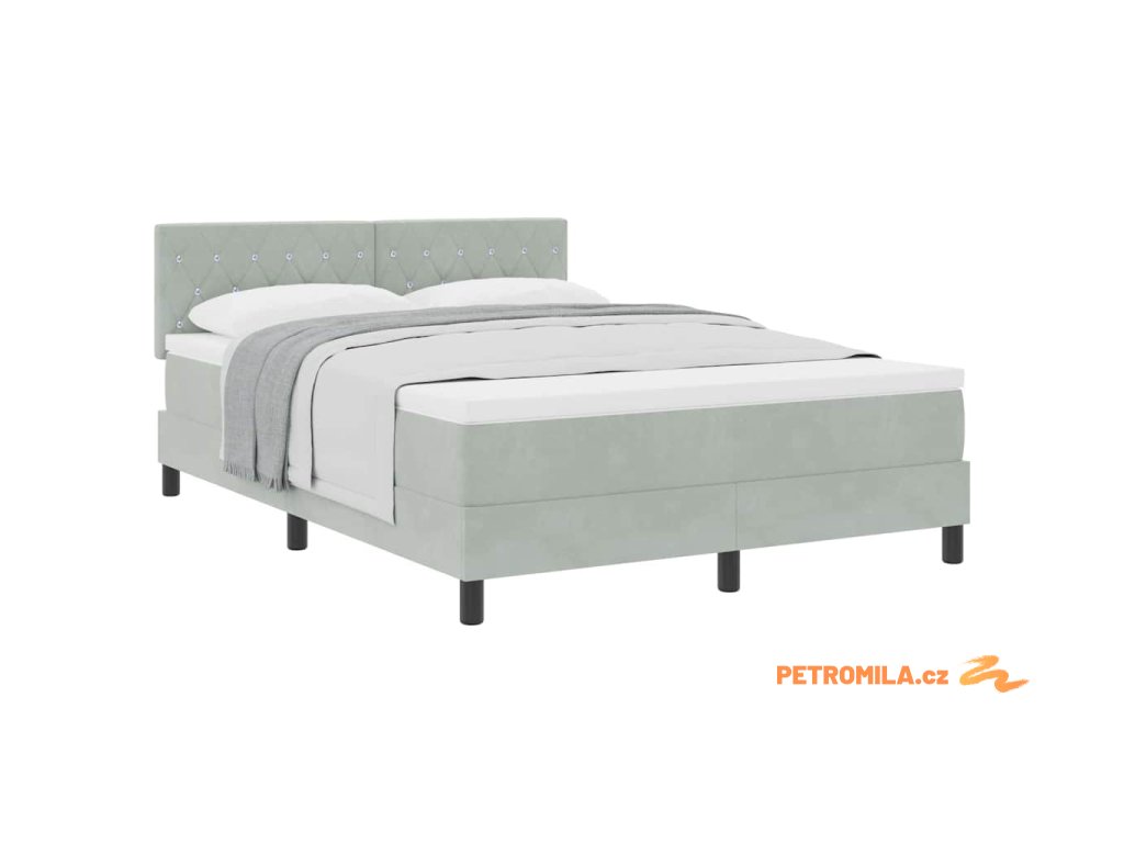 Postel s pružinami a matrací Světle šedá 140 x 200 cm textil