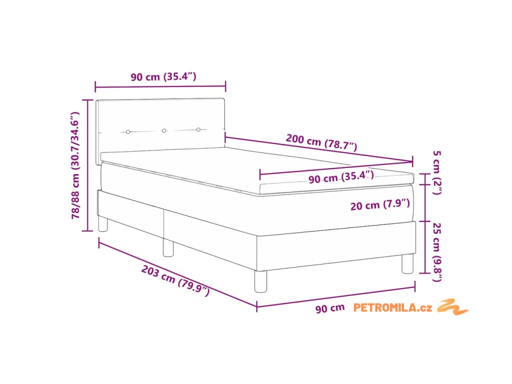 - Velikost matrace: Jednolůžko (90 cm x 200 cm nebo 35" x 79")