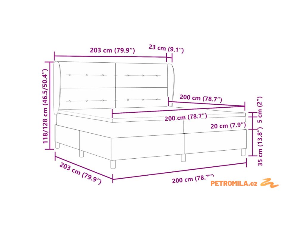 - Velikost matrace: Císařská postel (200 cm x 200 cm nebo 79" x 79")