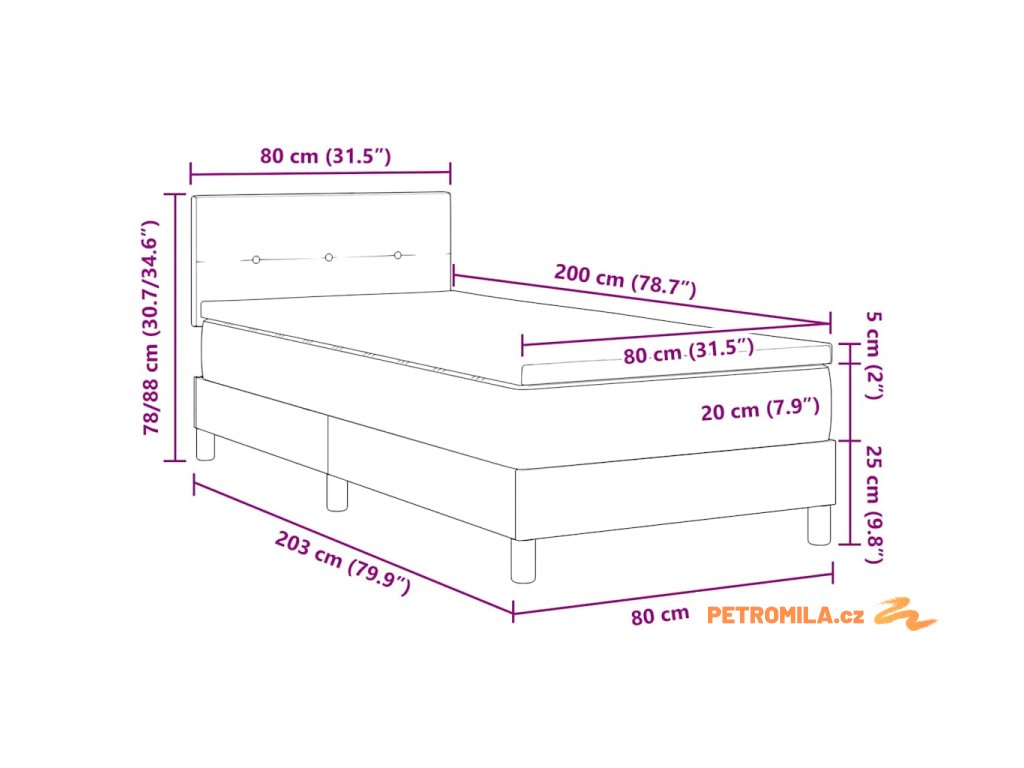 - Velikost matrace: Malé jednolůžko (80 cm x 200 cm nebo 31" x 79")