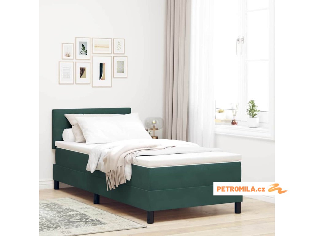 Postel s pružinami a matrací Tmavě zelená 90 x 200 cm textil