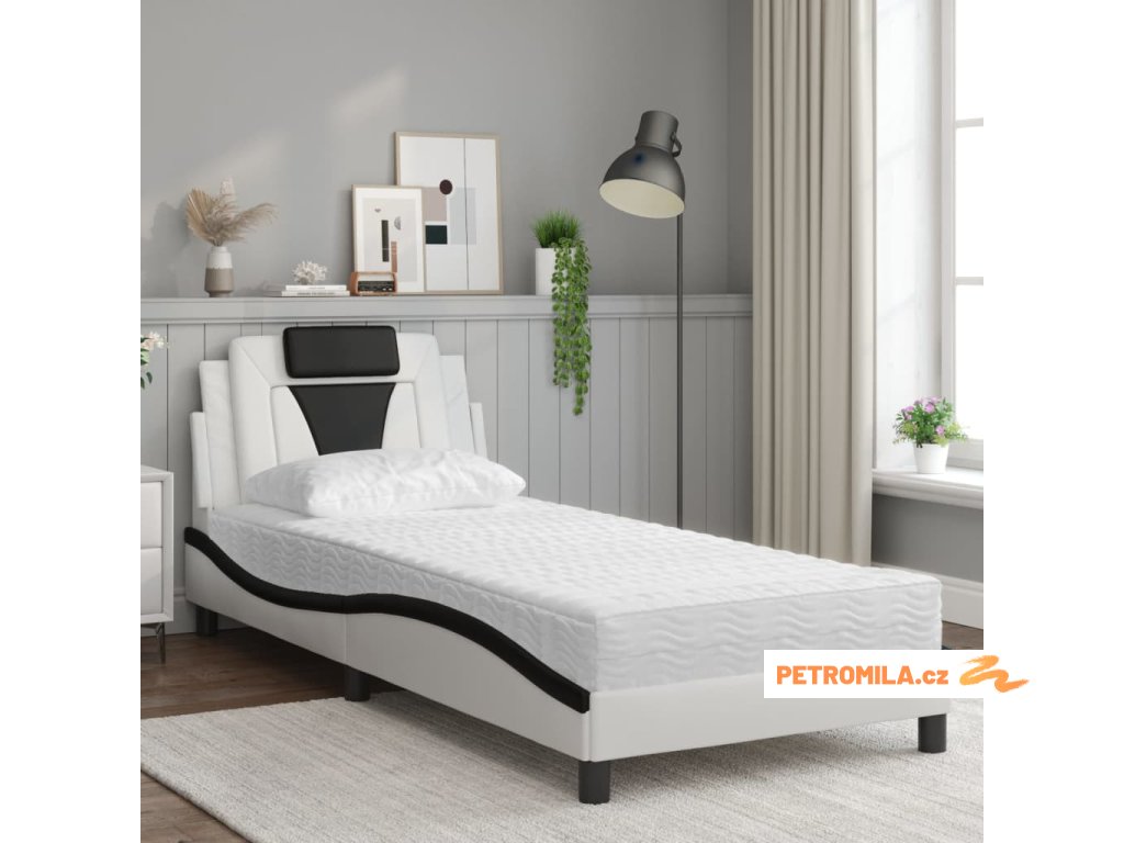 Postel Viana s matrací bílá a černá 80 x 200 cm umělá kůže