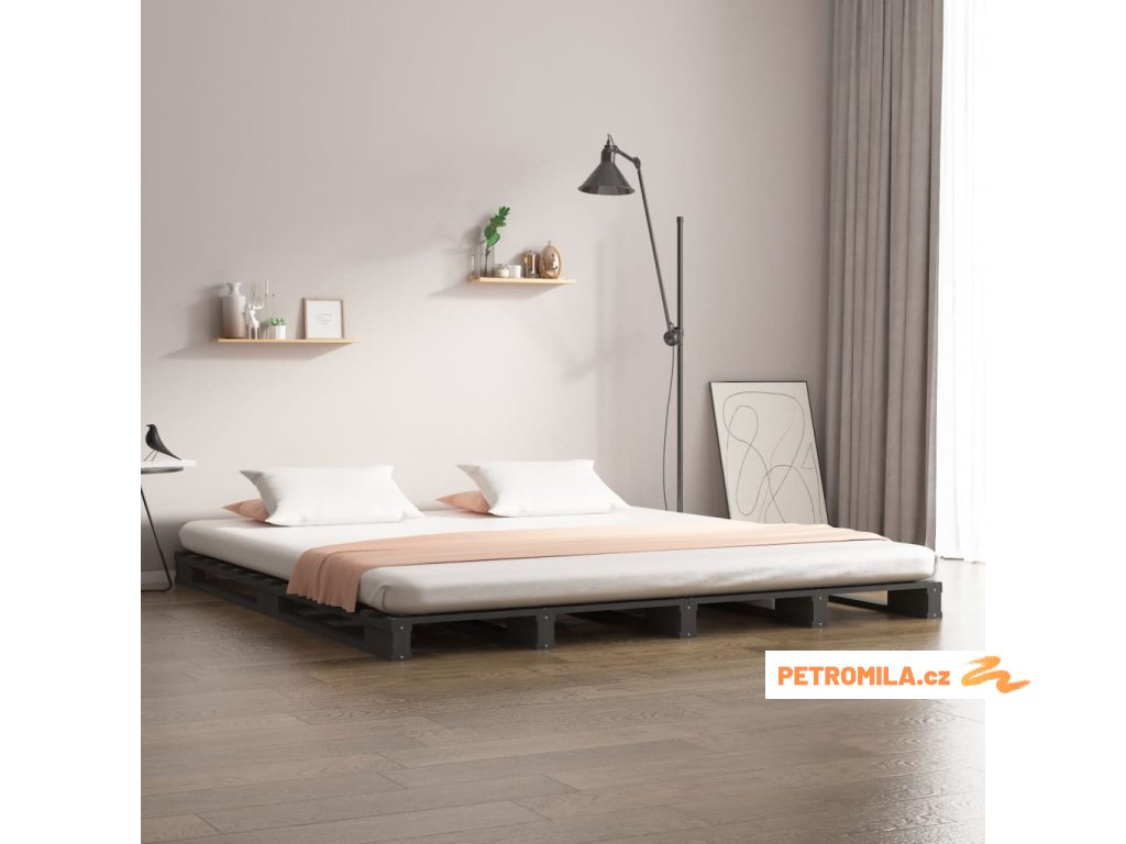 Postel z palet šedá 120 x 200 cm masivní borové dřevo