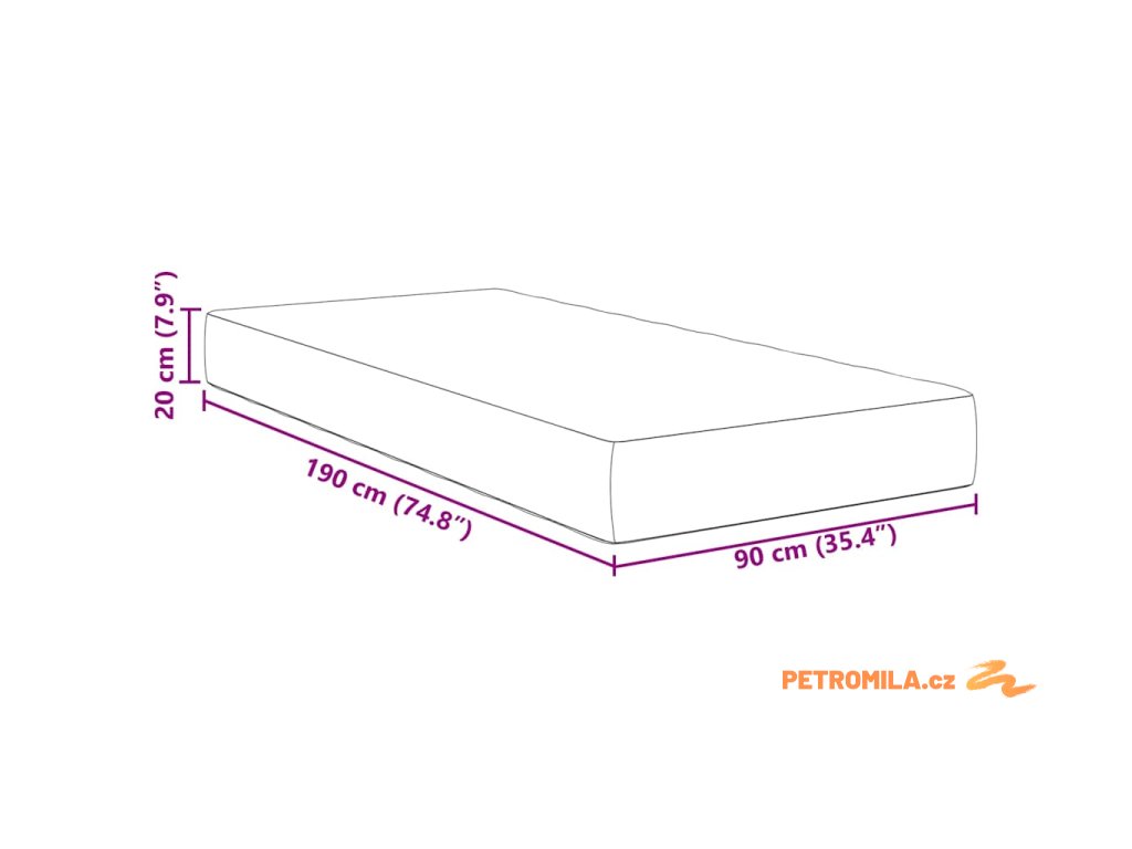 - Velikost matrace: Krátké jednolůžko (90 cm x 190 cm nebo 35" x 75")