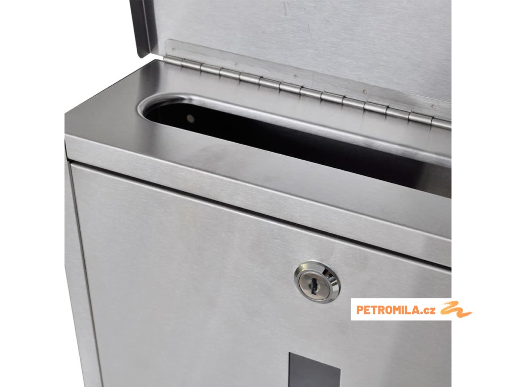 Tato poštovní schránka s úhledným moderním designem je vyrobena z trvanlivé nerezové oceli . Na schránce najdete štěrbinu na vhazování pošty , praktickou zámku se dvěma klíči , držák na noviny a tři malá okénka , přes které můžete zkontrolovat, zda se uvnitř nachází pošta . Tato kvalitní schránka se vám určitě bude hodit ! V balení se nachází poštovní schránka, 2 klíčky a montážní součástky .