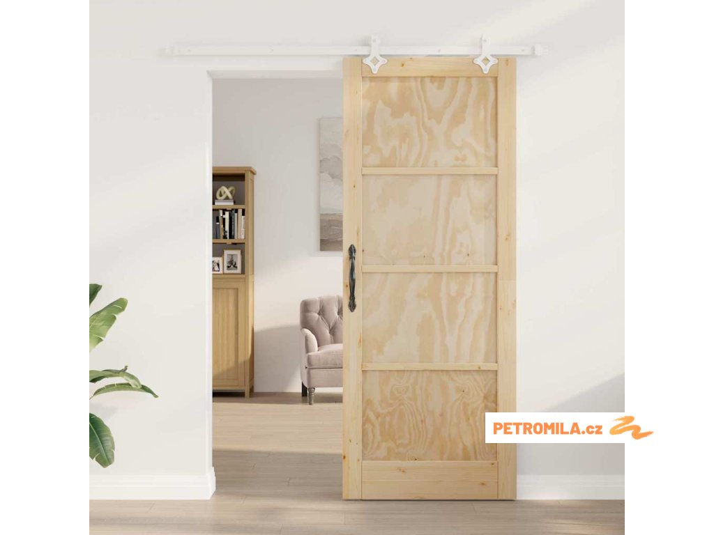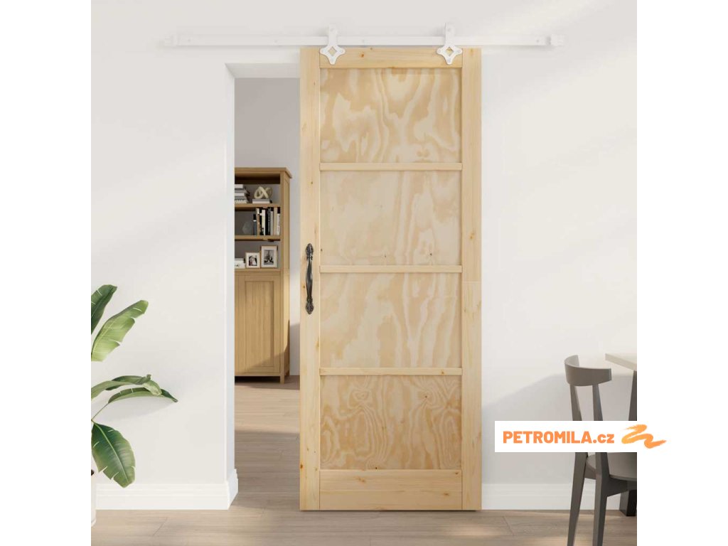 Posuvné Dveře Bílá 83 x 211 cm Masivní borové dřevo a ocel