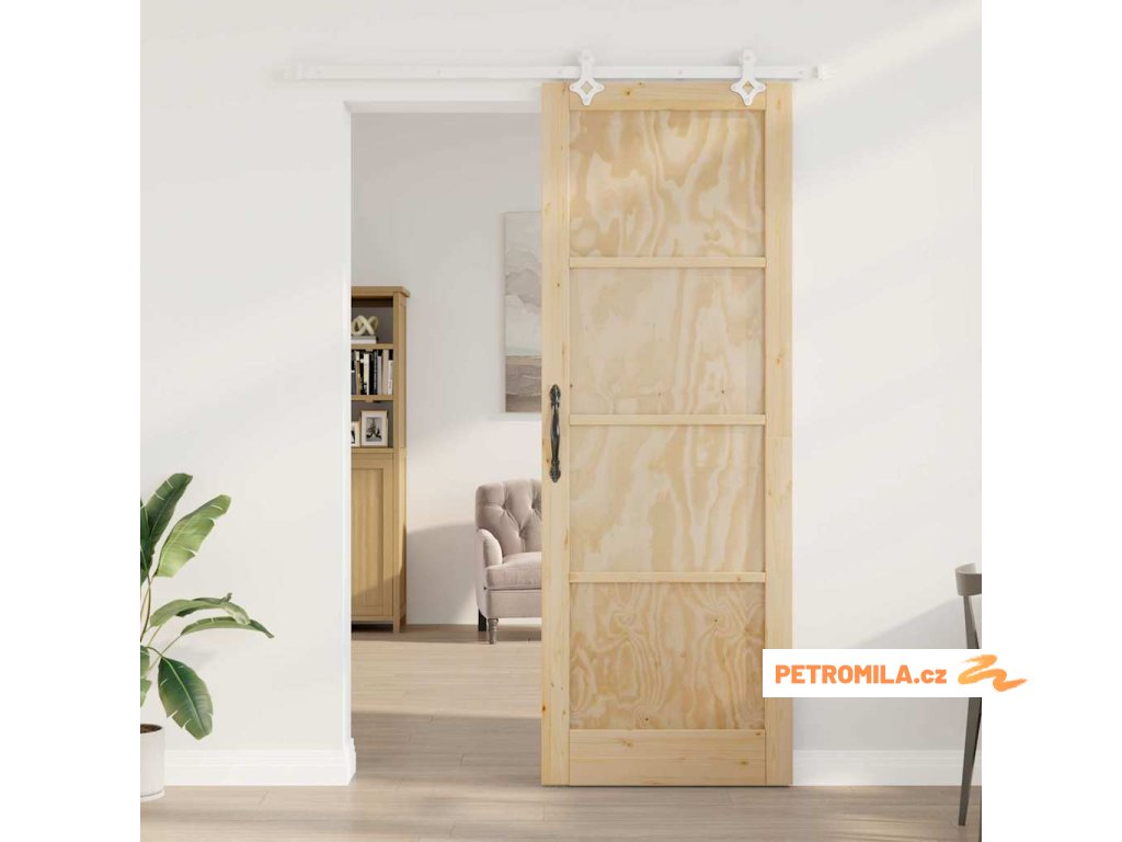 Posuvné Dveře Bílá 83 x 232 cm Masivní borové dřevo a ocel