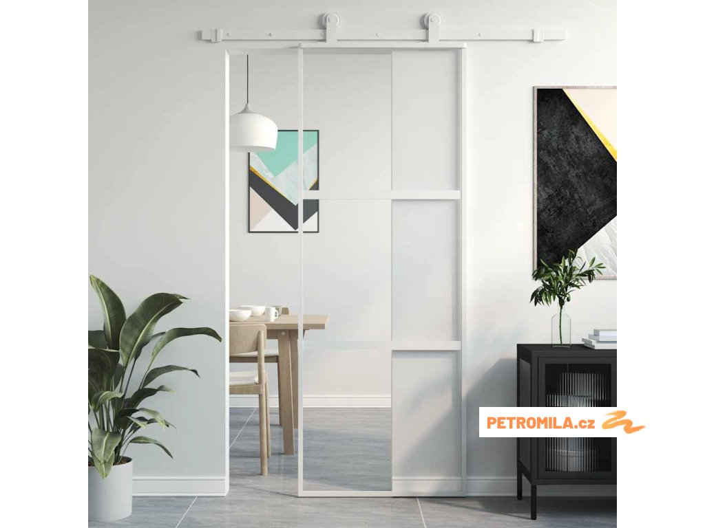 Posuvné dveře bílé 76 x 205 cm tvrzené sklo a hliník