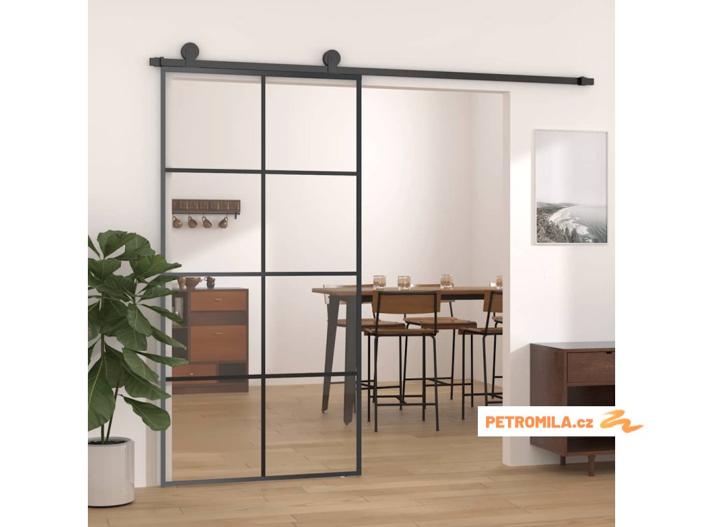 Posuvné dveře černé 102,5 x 205 cm ESG sklo a hliník