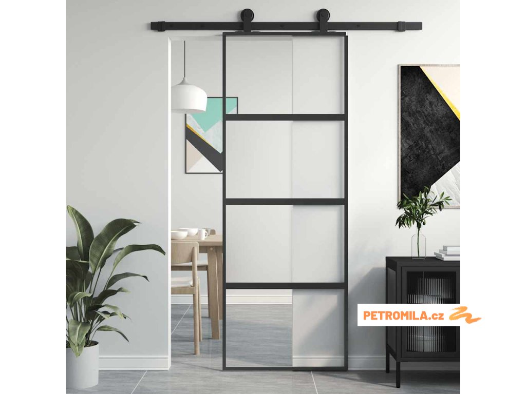 Posuvné dveře černé 76 x 205 cm tvrzené sklo a hliník