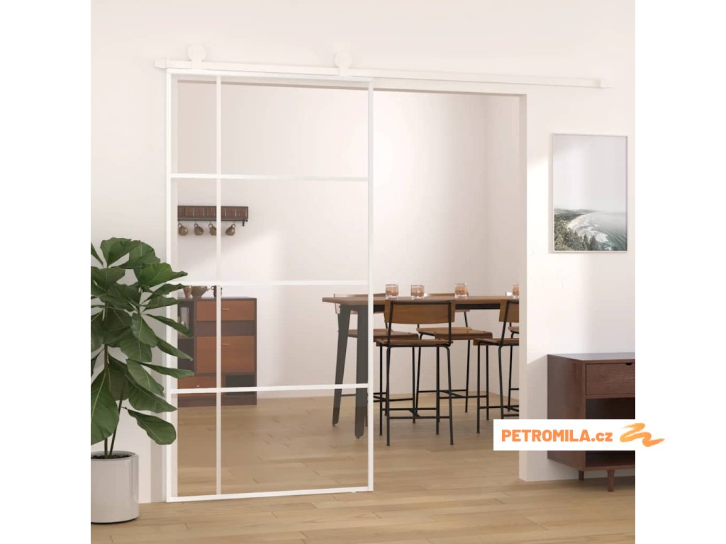 Posuvné dveře ESG sklo a hliník 102,5 x 205 cm bílé