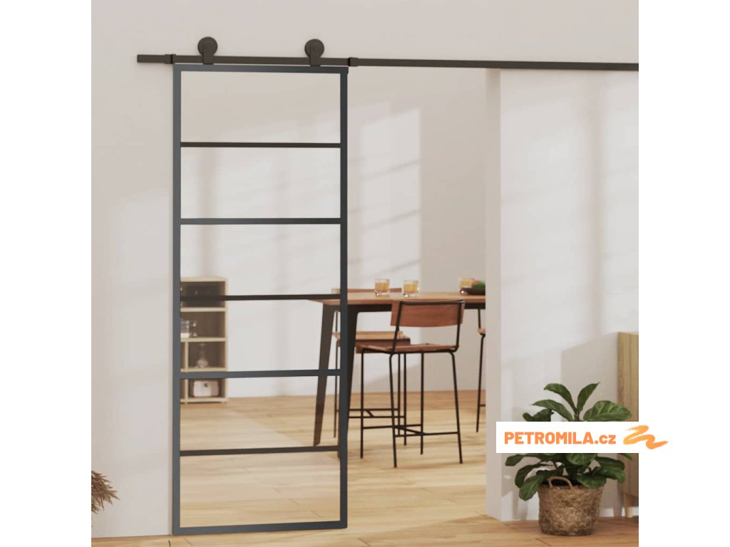 Posuvné dveře ESG sklo a hliník 76 x 205 cm černé