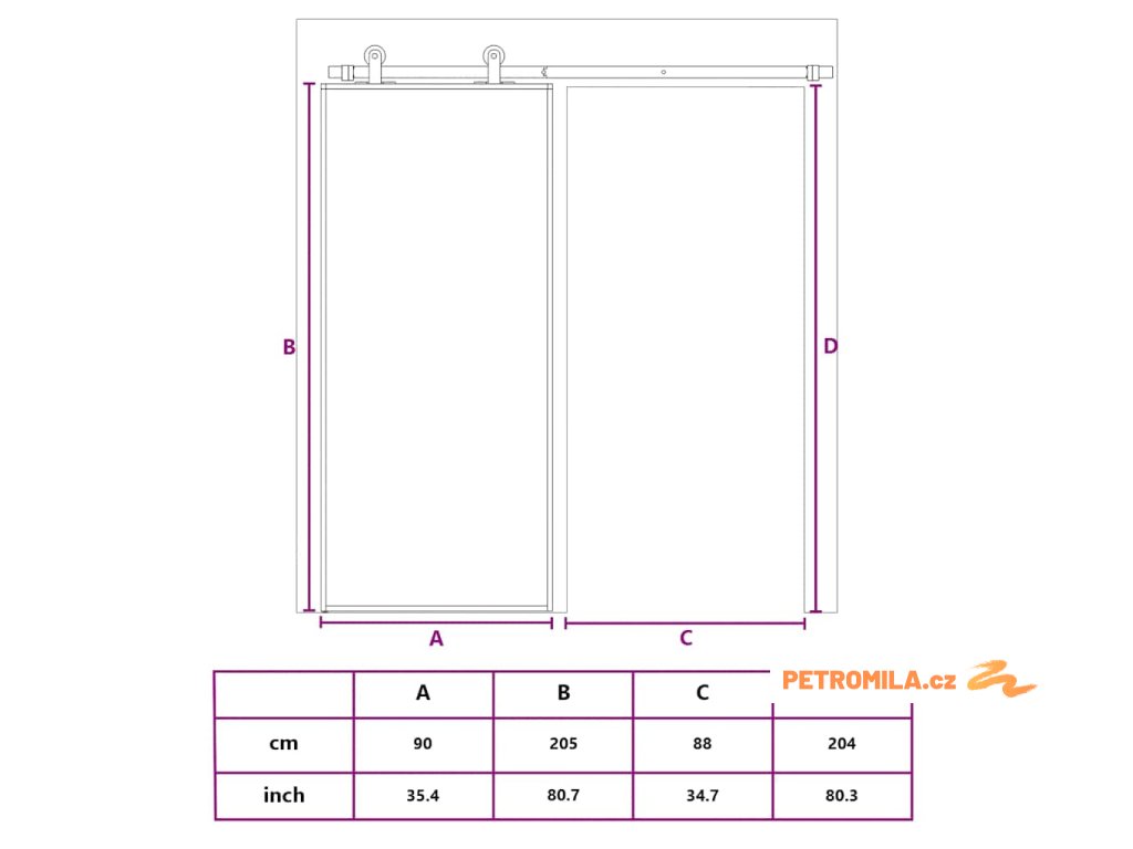 - Horní pojezdové kolejnice a pojezdová kolečka nejsou součástí balení.