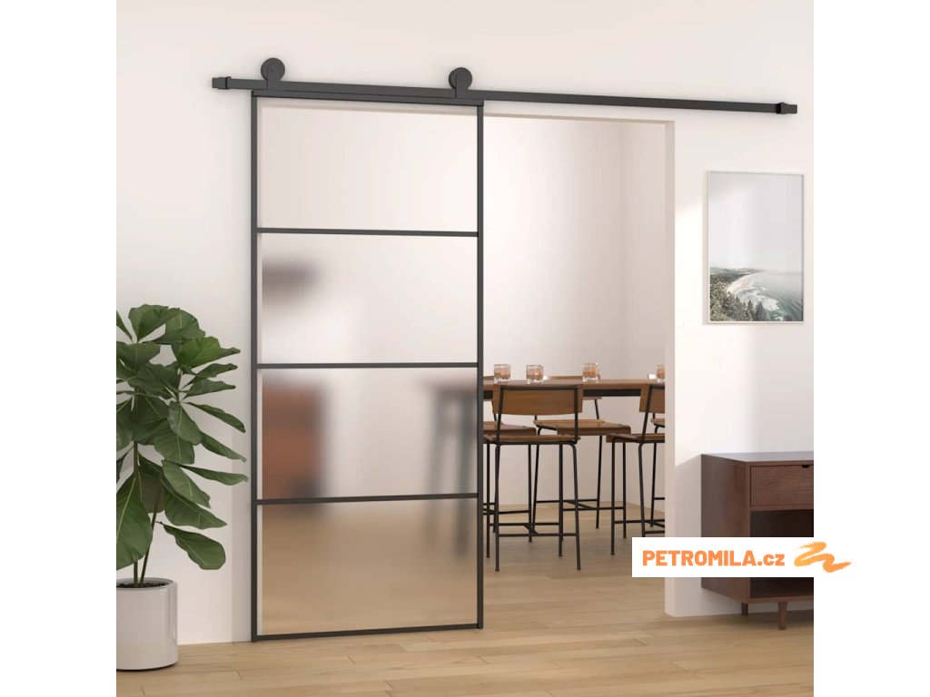 Posuvné dveře mléčné ESG sklo a hliník 90 x 205 cm černé