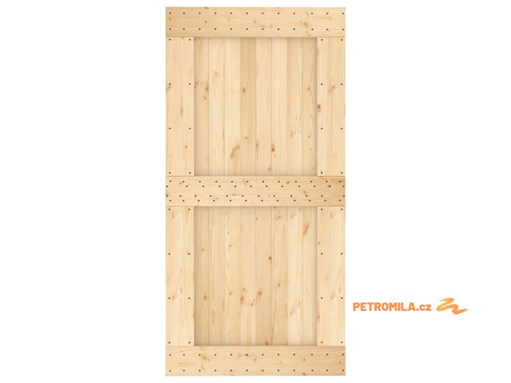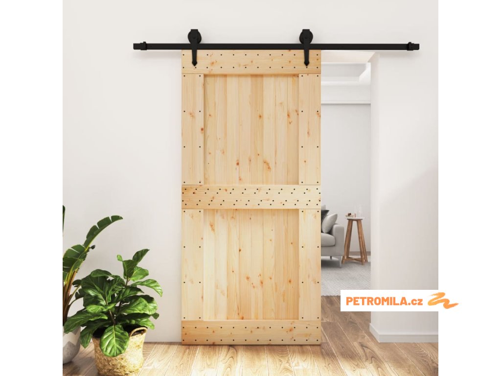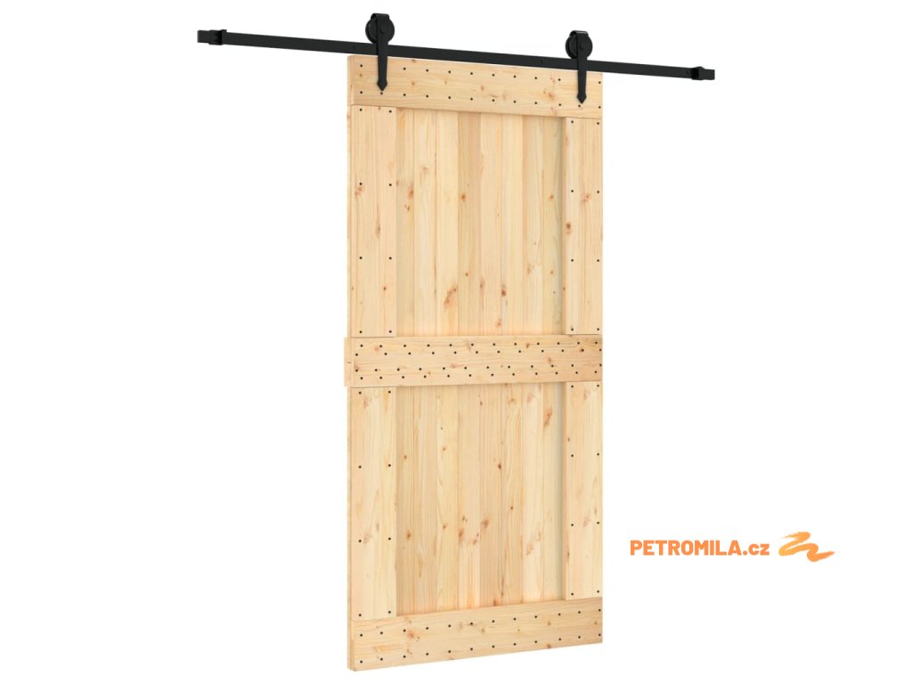 Posuvné dveře s kováním 100 x 210 cm masivní borové dřevo