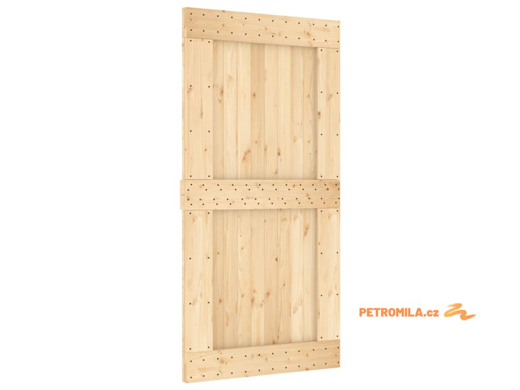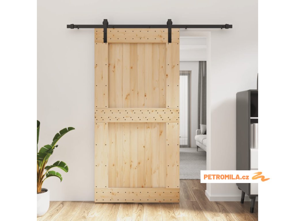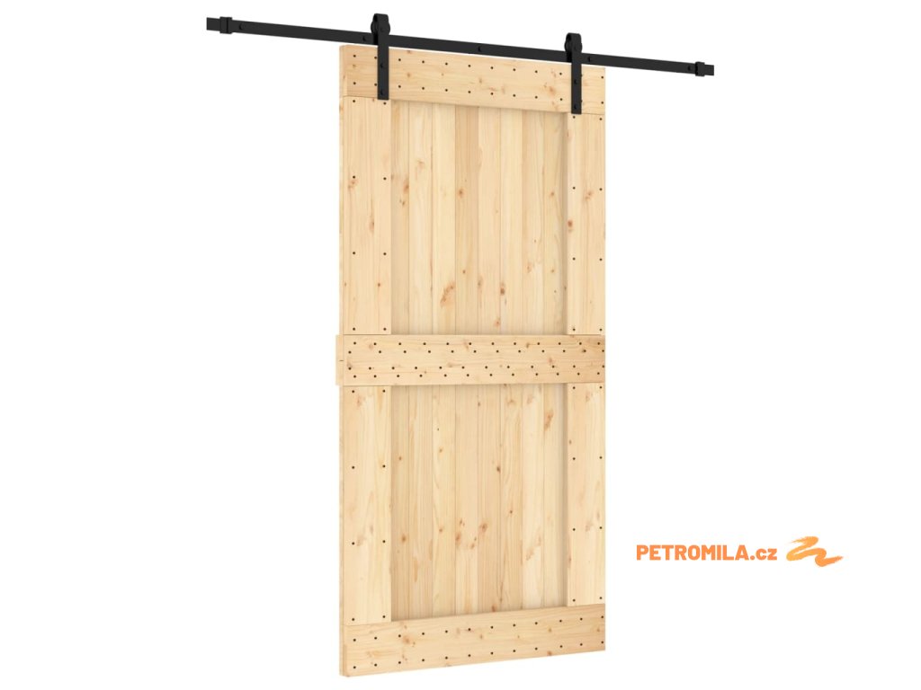 Posuvné dveře s kováním 100 x 210 cm masivní borové dřevo