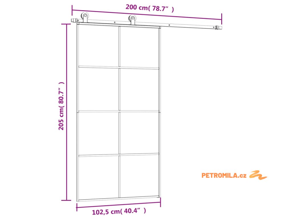 Posuvné dveře s kováním 102,5 x 205 cm ESG sklo a hliník