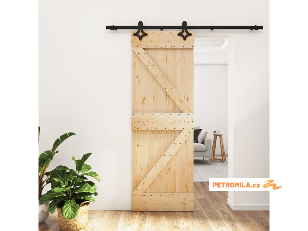 Posuvné dveře s kováním 70 x 210 cm masivní borové dřevo