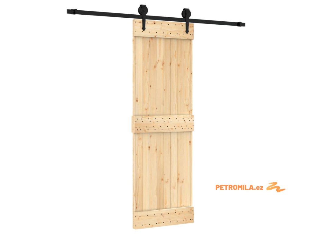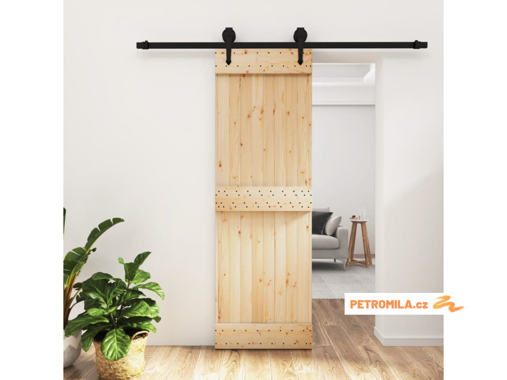 Posuvné dveře s kováním 70 x 210 cm masivní borové dřevo