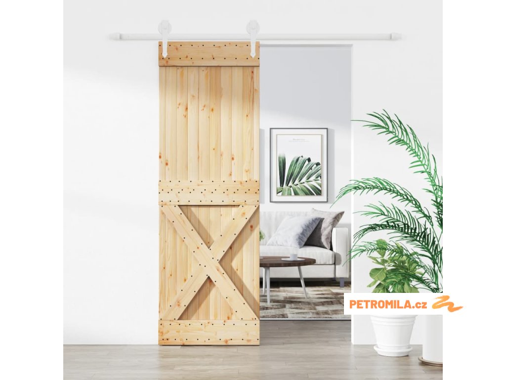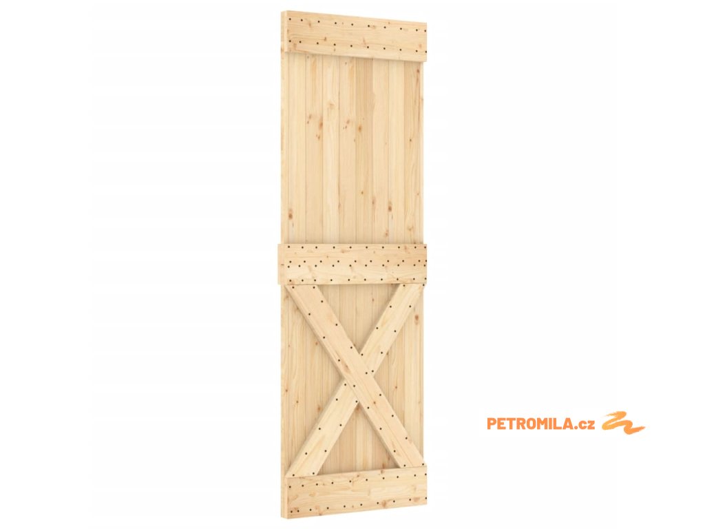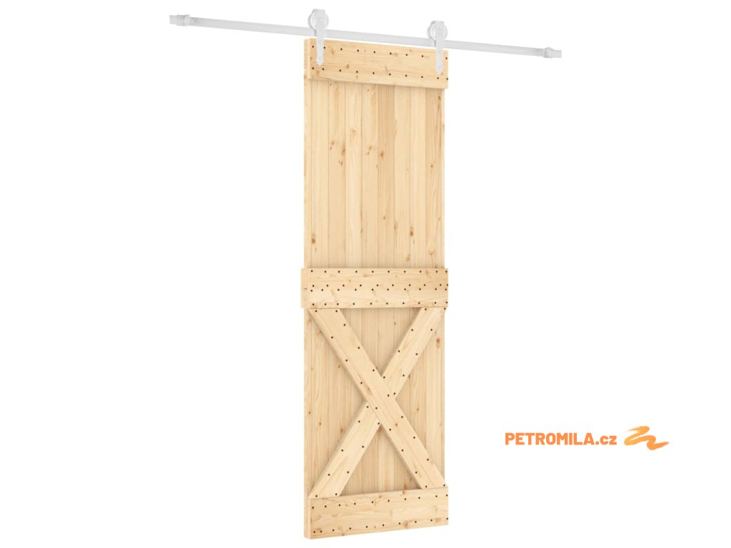 Posuvné dveře s kováním 70 x 210 cm masivní borové dřevo